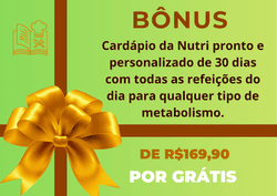 - Cardápio da Nutri pronto e personalizado de 30 dias com todas as refeições para qualquer tipo de metabolismo R$ 169,90
